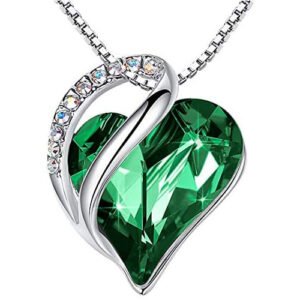 Leafael Infinity Love Heart Pendant Necklace with Birthstone Crystals for 12 Months, Jewelry Gifts for Women, Silver-Tone, 18″+2″